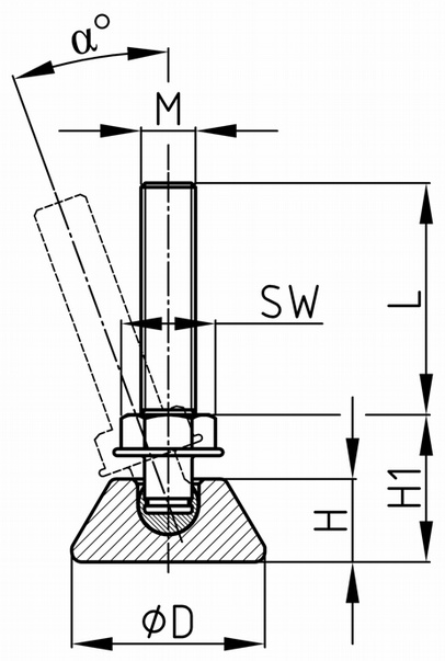 Stavitelný šroub – kloubový kluzák pro střední zatížení s plastovým kulovým čepem