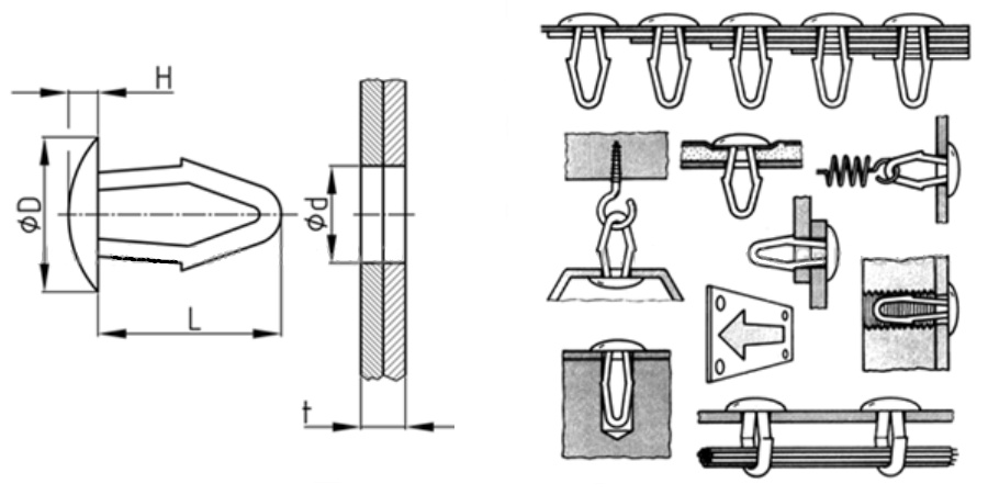 Široké použití jako spojovací, závěsný a upevňovací prvek
