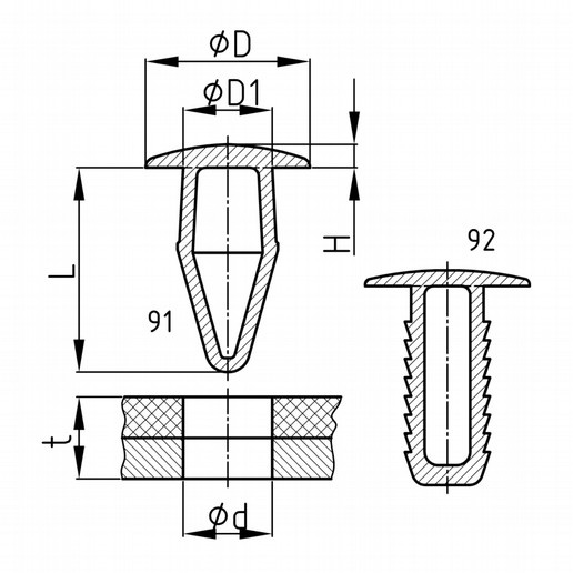 | Rozměr d | Rozměr D | Rozměr D1 | Rozměr H | Rozměr L | Rozměr t | Barva | Objednací číslo | |