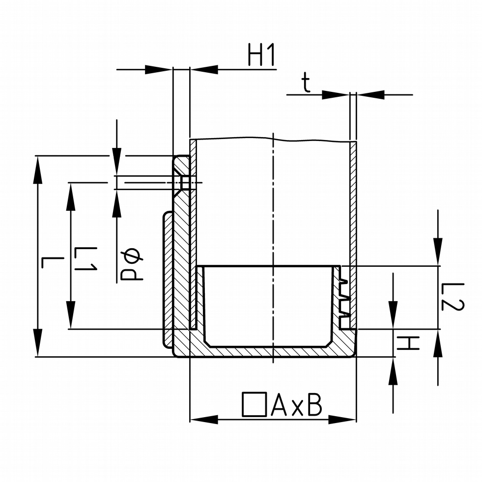 | Rozměr A | Rozměr B | Rozměr d | Rozměr H | Rozměr H1 | Rozměr L | Rozměr L1 | Rozměr L2 | Rozměr t | Objednací číslo | |