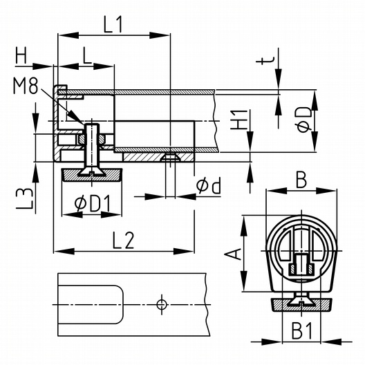 | Rozměr A | Rozměr B | Rozměr B1 | Rozměr d | Rozměr D | Rozměr D1 | Rozměr H | Rozměr H1 | Rozměr L | Rozměr L1 | Rozměr L2 | Rozměr L3 | Rozměr t | Objednací číslo | |