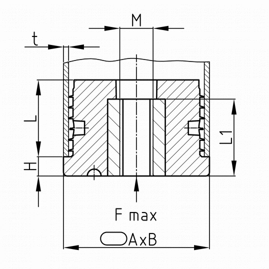 | Rozměr A | Rozměr B | Rozměr F max. kg | Rozměr H | Rozměr L | Rozměr L1 | Rozměr M | Rozměr t | Objednací číslo | |